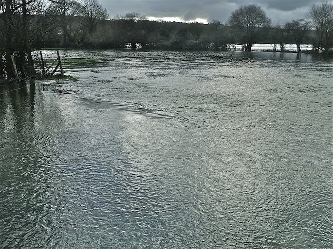 La vallée de la Sée est inondée. Un fort courant balaie en ligne droite le lit majeur. Sur une touffe de jonc, au milieu de la prairie, quelques débris sont bloqués temporairement, dont une ponte de grenouille (probablement agile ) Les têtards déjà bien développés dans les oeufs ont pour l'instant échappé aux mouettes rieuses qui font leur marché sur place. Mais de toute façon, quand le fleuve aura réintégré sont lit mineur, la ponte à sec sur le pré sera condamnée. Ce n'est pas la première observation de ce type. Les vallées inondables ne sont pas des havres de paix pour les pontes d'amphibiens... sauf si les oeufs se retrouvent par hasard dans un fossé ou une des mares à gabion en aval...