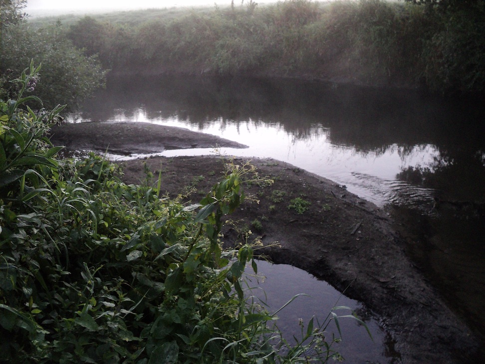 6h55 : cris de bouvreuils, dont imm, geai, martin-pêcheur en vol sur la Sée;