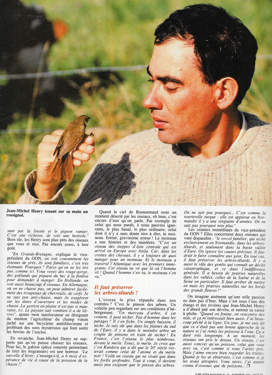 1991 11 00 - GONm-J.M. HENRY- Eure Inter Magazine n°34- p 68- 1993 06 17 - J.M. Henry - Hode -roselière - Lauriers de l'Environnement -Paris-Normandie - couverture - 1993 06 19 - Lauriers de l'Environnement - Hode - roselière - J.M. Henry - Le Point n°1083 - pages 71-73- 1998 01 00 - Jean-Michel Henry - GONm - ARHEN n°5