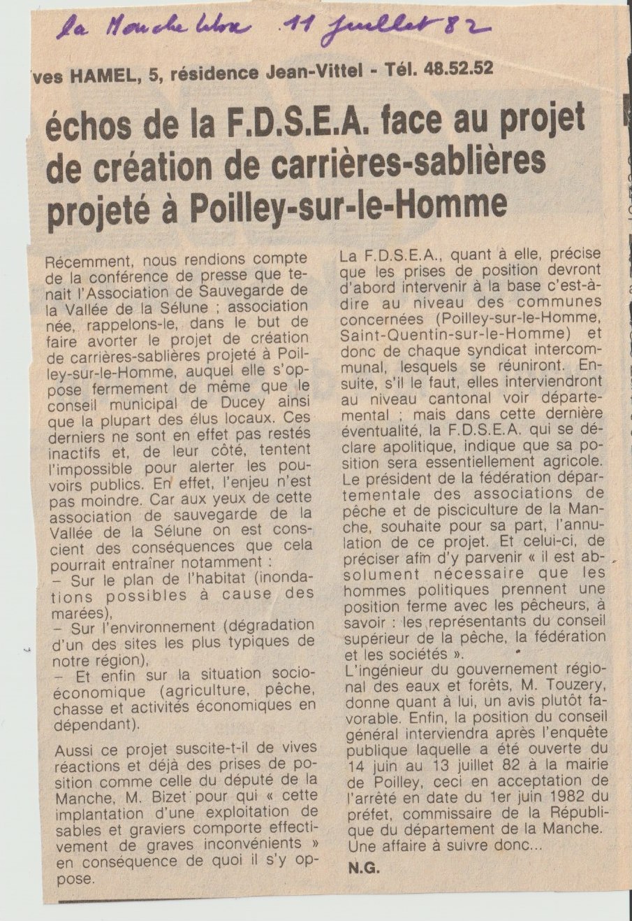 Suite message 226 projet sablière Poilley, 1982