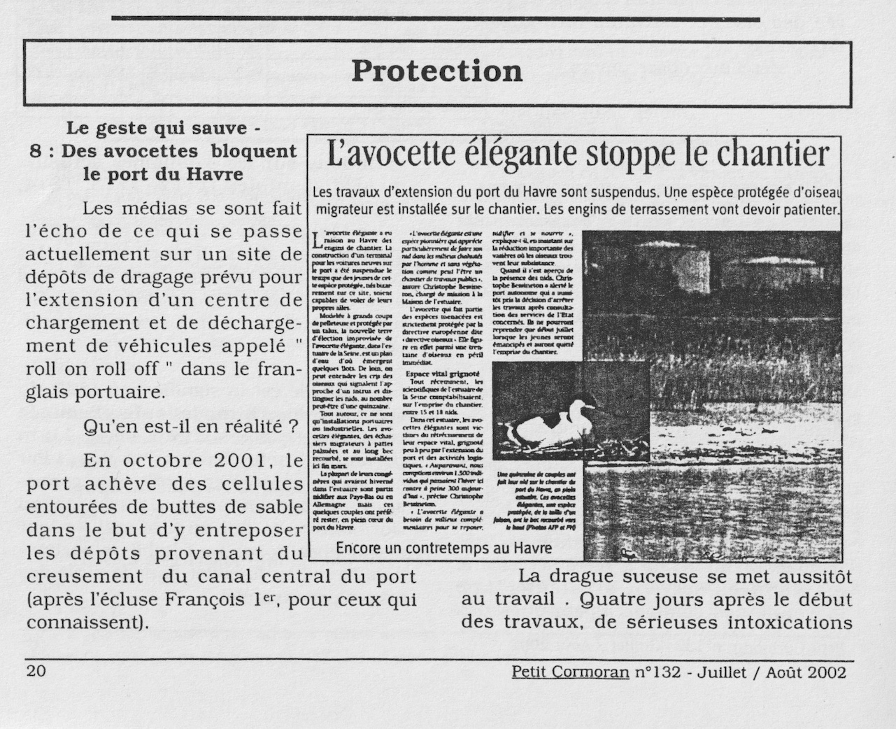 A partir de 2001, une rubrique plus ou moins régulière rapporte des témoignages ou des expériences en lien avec la protection des oiseaux ou des habitats. Cette expérience durera dans le temps avec tout le succès de nidification attendu en contrepartie de chantiers d'entretien répétés sous la houlette de Christian Gérard, conservateur de la réserve qu'il faut remercier ici, de même que tous les bénévoles et salariés dont Céline Chartier, qui ont participé à ces travaux d'aménagement. Thierry Lefèvre motive depuis longtemps les adhérents du GONm pour la pose de nichoirs destinés aux rapaces dont il est certainement l'acteur le plus actif. Il gère aussi le fichier des résultats. La question de la lutte antiparasitaire du bétail est probablement une cause majeure de disparition de nombreuses espèces liées aux gros insectes (bousiers) de même que celle du comblement des mares (dytiques, libellules et autres) : pie-grièche, chevêche, huppe,...