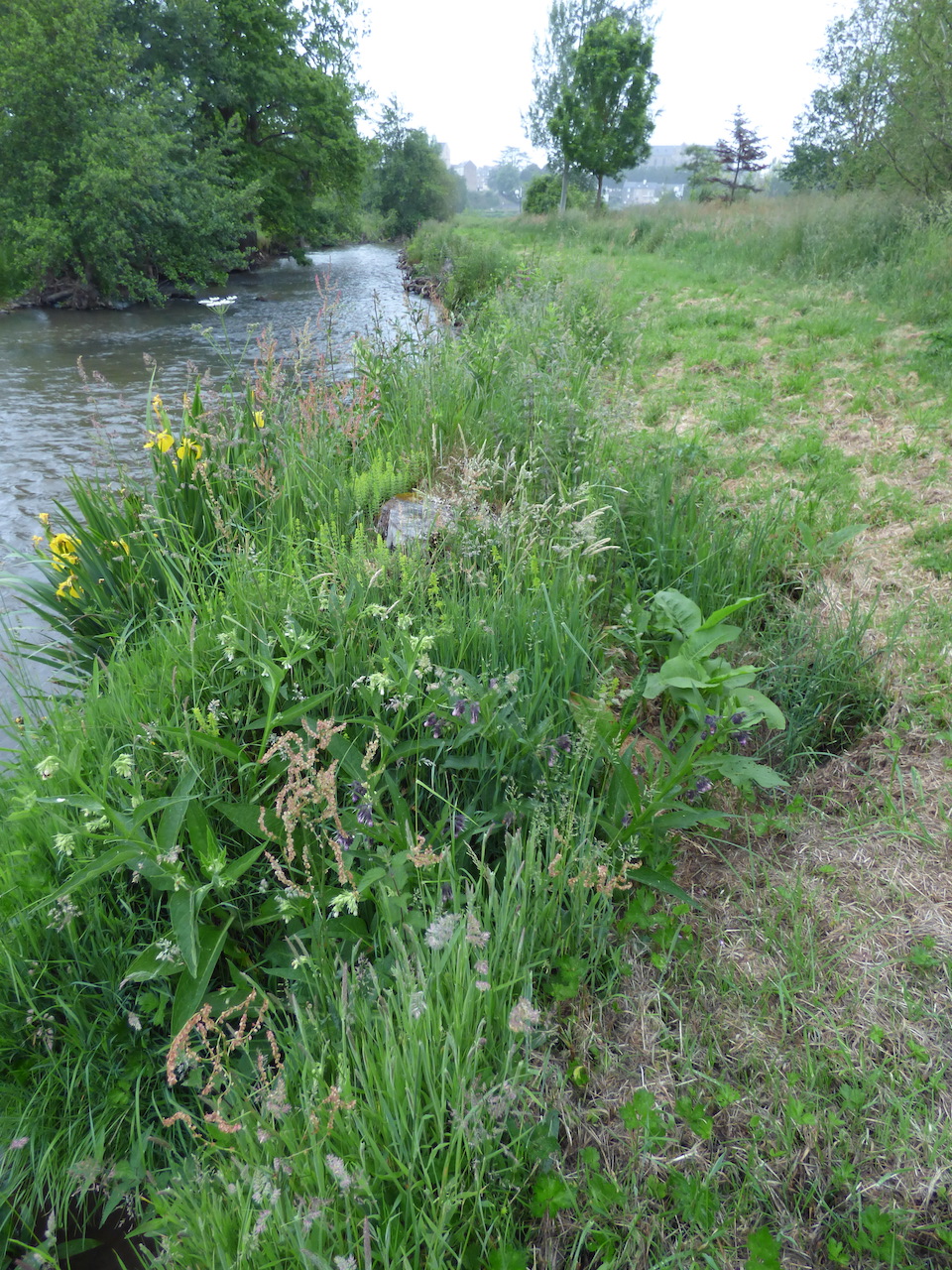 Même si le texte de la convention n'est pas contraignant (un refuge n'est pas une réserve), on peut au moins espérer que la qualité de la gestion ne régresse pas. Sur ce refuge, une partie de la surface est occupée par un arboretum et n'est plus tondue systématiquement, sauf pour laisser un chemin de ceinture côté rivière afin que les promeneurs circulent plus facilement. Non seulement il n'est pas agréable de marcher dans les hautes herbes quand elles sont mouillées (à moins d'être équipé), mais surtout le tracé d'un chemin ras guide les pas et limite la circulation partout ailleurs dans l'herbe.