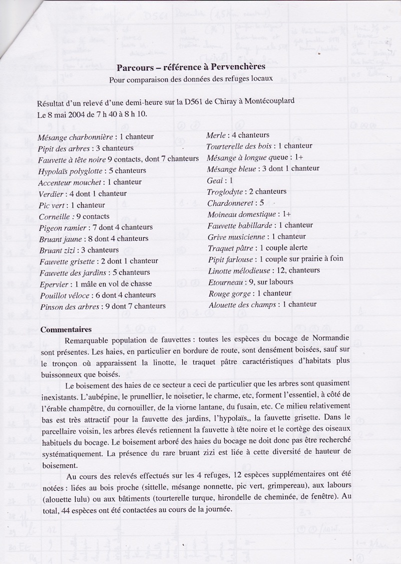 La fauvette des jardins (jd), la fauvette grisette (gr), l'hypolaïs polyglotte (hp),le bruant jaune (bj), la tourterelle des bois (ttb), la linotte mélodieuse (li), sont ici plus nombreux que dans bien des secteurs bocagers "purs et durs".