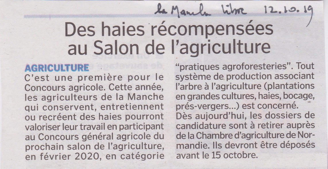 La haie est le support de l'essentiel de l'avifaune du bocage et donc un élément capital à prendre en compte sur beaucoup de nos refuges. Ce projet de label parait encourageant dans son esprit bien que très ancré dans une vision uniquement productiviste : produire du bois "éthique, durable et local". Tant mieux si cette démarche aide à sauver des kilomètres de haie et talus boisés en rentabilisant le bois des haies. Mais plus globalement, l'usage de la mécanisation actuelle peu soigneuse du "bien être" des plantes de la haie augure mal du futur de beaucoup de haies agricoles, sans parler de celles du bord des routes probablement condamnées à terme, au moins pour ce qui est des routes communales.