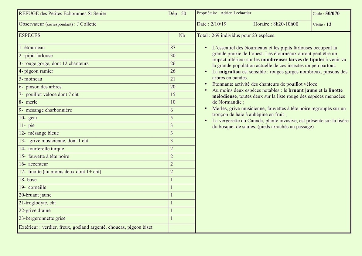 Lors de la première visite effectuée par Alain Brodin, le correspondant de ce nouveau refuge et Philippe Gachet, 21 espèces ont été répertoriées. Merci à Chantal et Patrick pour leur accueil enthousiaste et attentif.