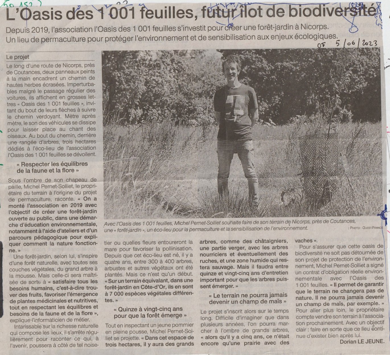 La publication d'un article dans la presse a débouché sur une prise de contact entre le GONm et l'association gérant le site de Nicorps tel qu'il est décrit dans l'article de Ouest-France. Les objectifs de l'association de l'Oasis des 1001 feuilles étaient en adéquation avec la vision actuelle de l'évolution possible de certaines parcelles bocagères (déprise, libre évolution ou réensauvagement selon la philosophie qui sous tend la démarche). La présence de l'hypolaïs polyglotte (couple alertant) est logique lors du premier passage le 7 août.
