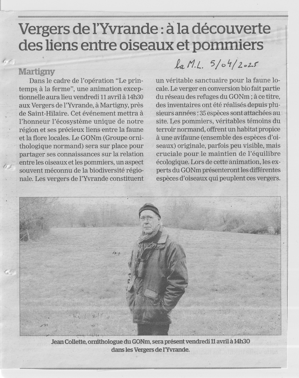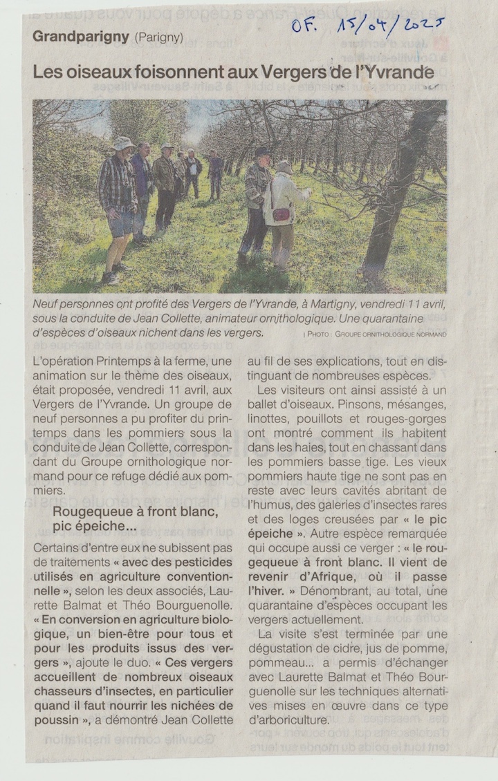 Un verger qui termine sa conversion en AB, une opération "printemps à la ferme", animation proposée aux gestionnaires adhérents du GONm. Trois titres de presse, 4 articles! En compensation de toutes les fois où nous n'arrivons pas à motiver la presse locale...