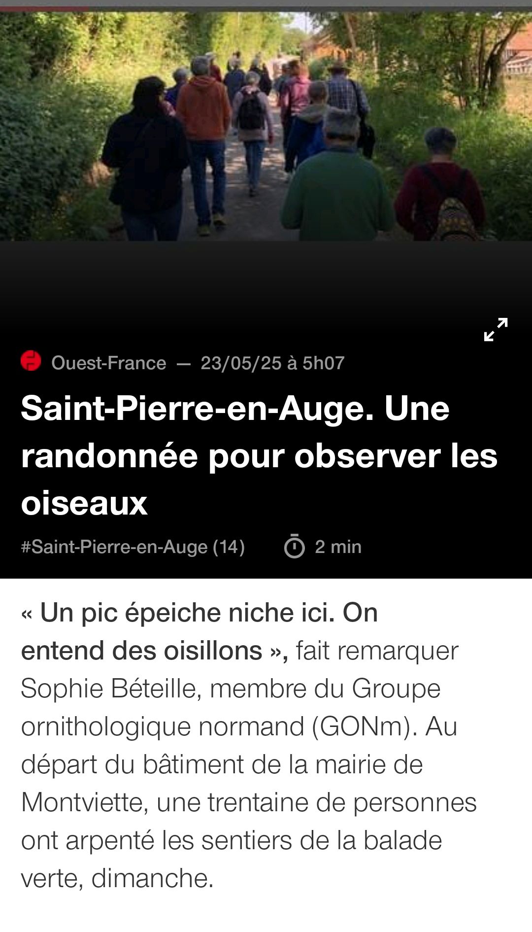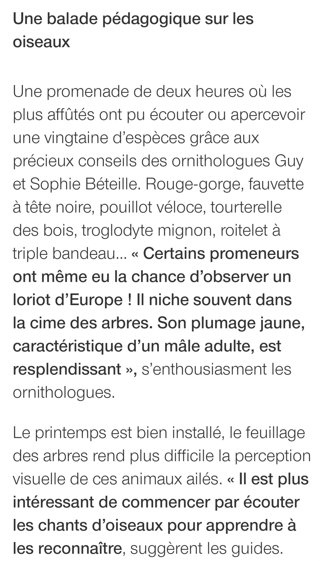 Ci-dessous une capture d'écran d'article en ligne, sur l'application Ouest-France.