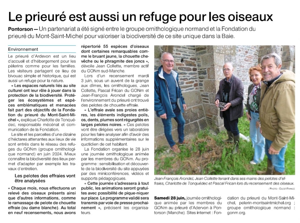 La presse était présente pour un reportage sur un événement annuel : le stage de l'Ascension du GONm qui permet de répertorier les nids d'oiseaux marins. Une vidéo est visible temporairement sur le site Ouest-France.