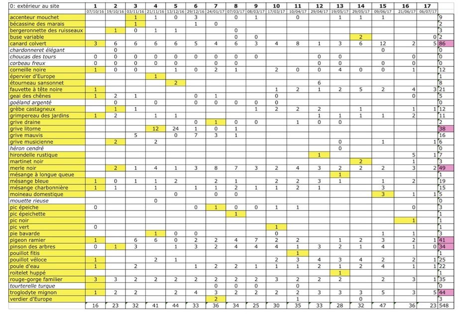 Deux sorties d'une heure ont permis d'observer une vingtaine d'espèces sur le site, dont le pic épeichette, le pic épeiche, la linotte mélodieuse et le roitelet huppé.