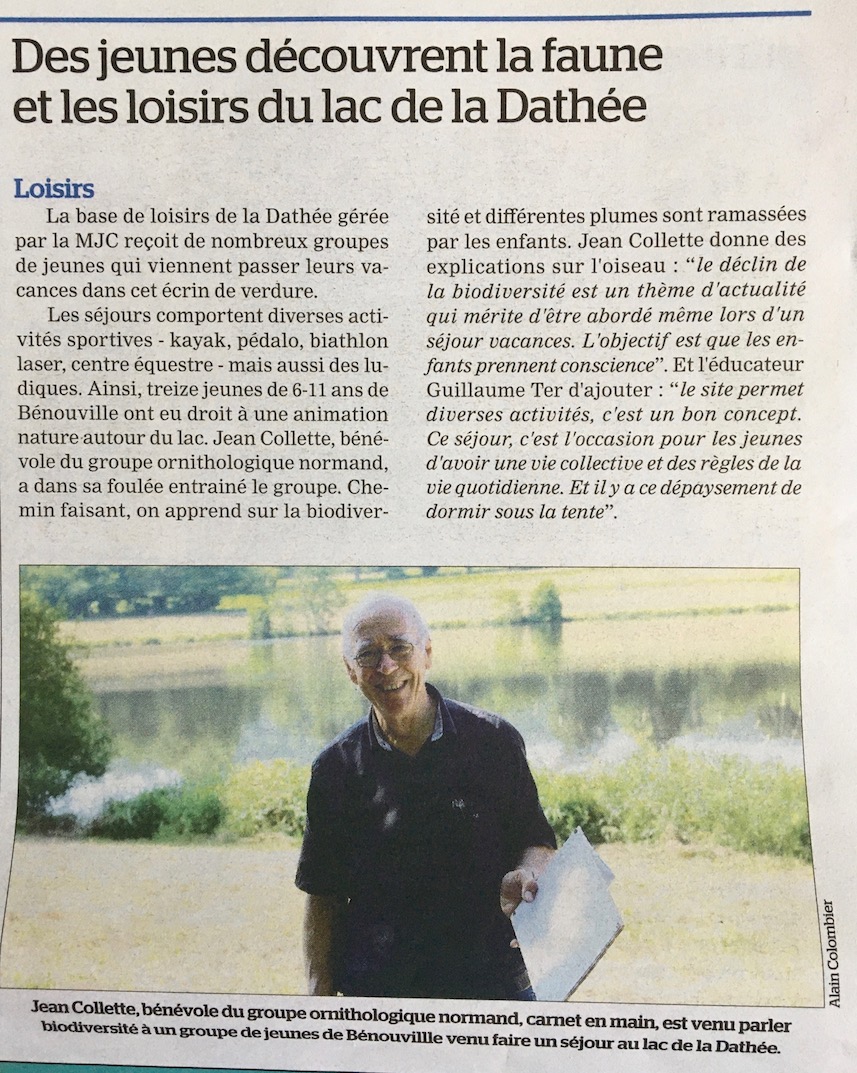 Pour l'occasion, deux articles publiés par Ouest-France ont rapporté cette participation. Désolé pour Sylvain Hamel, le conservateur actuel de la réserve, je n'ai pas cherché à le "destituer", la journaliste s'est un peu mélangé les pinceaux dans la chronologie de l'histoire de cette réserve du GONm...L'essentiel est que l'association apparaissent dans les colonnes locales, ce qui va me permettre de porter à la connaissance de la municipalité notre étonnement de voir comment l'entretien des rives est exagéré et la pédagogie de la nature difficile à mettre en œuvre dans un tel environnement appauvri. L'idéal serait que, pour chaque groupe de stagiaires participant à des activités sportives sur la base de la Dathée, un créneau soit prévu dans le planning pour expliquer aux jeunes en quoi ils cohabitent avec des espèces sauvages dont ils doivent aussi respecter la présence. L'article de la Manche libre résume les objectifs du centre de loisirs; les animations nature classées comme "ludiques" ne sont peut être pas valorisées comme pédagogiques. (En lien avec l'animateur hilare?)