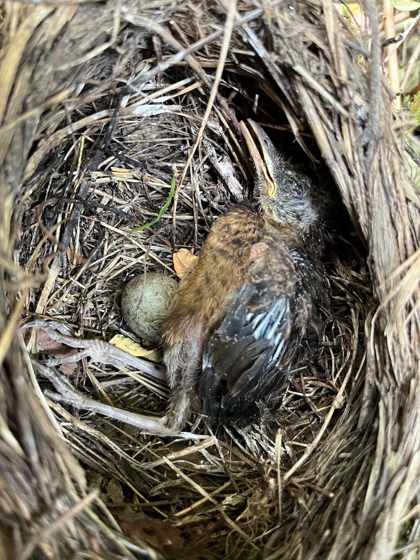 Outre le nid de merle tardif du message précédent, quelques traces estivales de vie sauvage au refuge. Sans prétention de détermination dans certains cas..