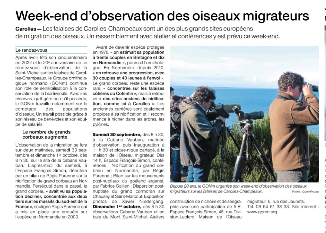 La présentation du week-end des migrateurs de Carolles des 30 septembre 2023 et 1er octobre 2023 est accompagnée de quelques informations ornithologiques sur le grand corbeau bienvenues.