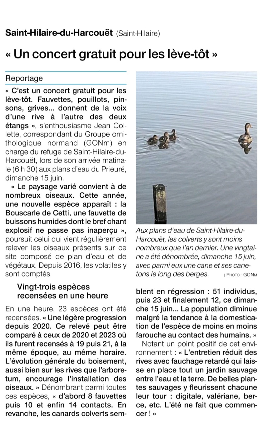 Les résultats d'une visite au refuge des étangs du prieuré sont le prétexte à un article. Le texte envoyé aux 3 titres locaux est repris et adapté par le journaliste. L'occasion surtout de noter avec satisfaction que l'entretien des rives devient plus réfléchi; quand c'est bien, faut le dire!