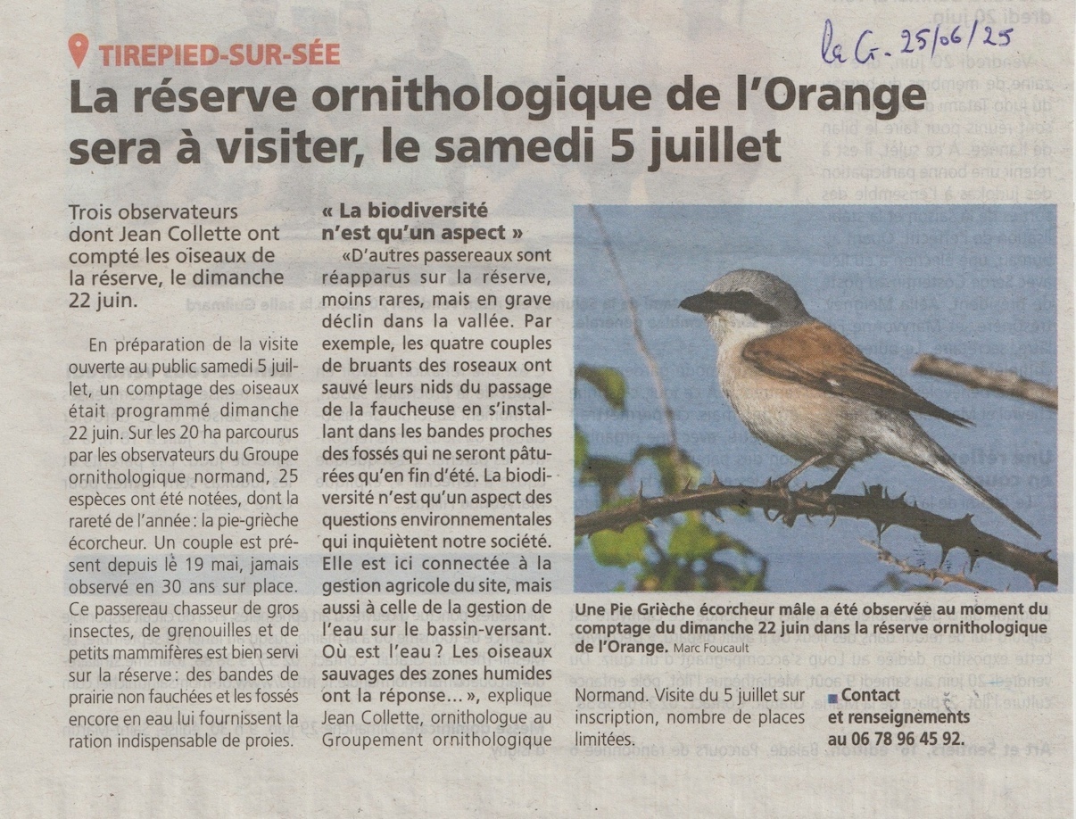 Compte-rendu de Paule Mahmoudi, correspondante locale du GONm à Vire.