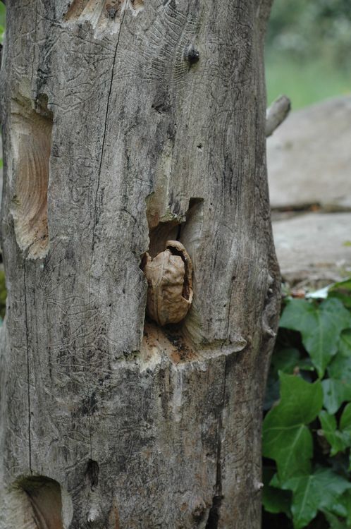 Le pic épeiche circule régulièrement. Il faut dire que le distributeur de noix fabriqué par Franck fonctionne très bien.