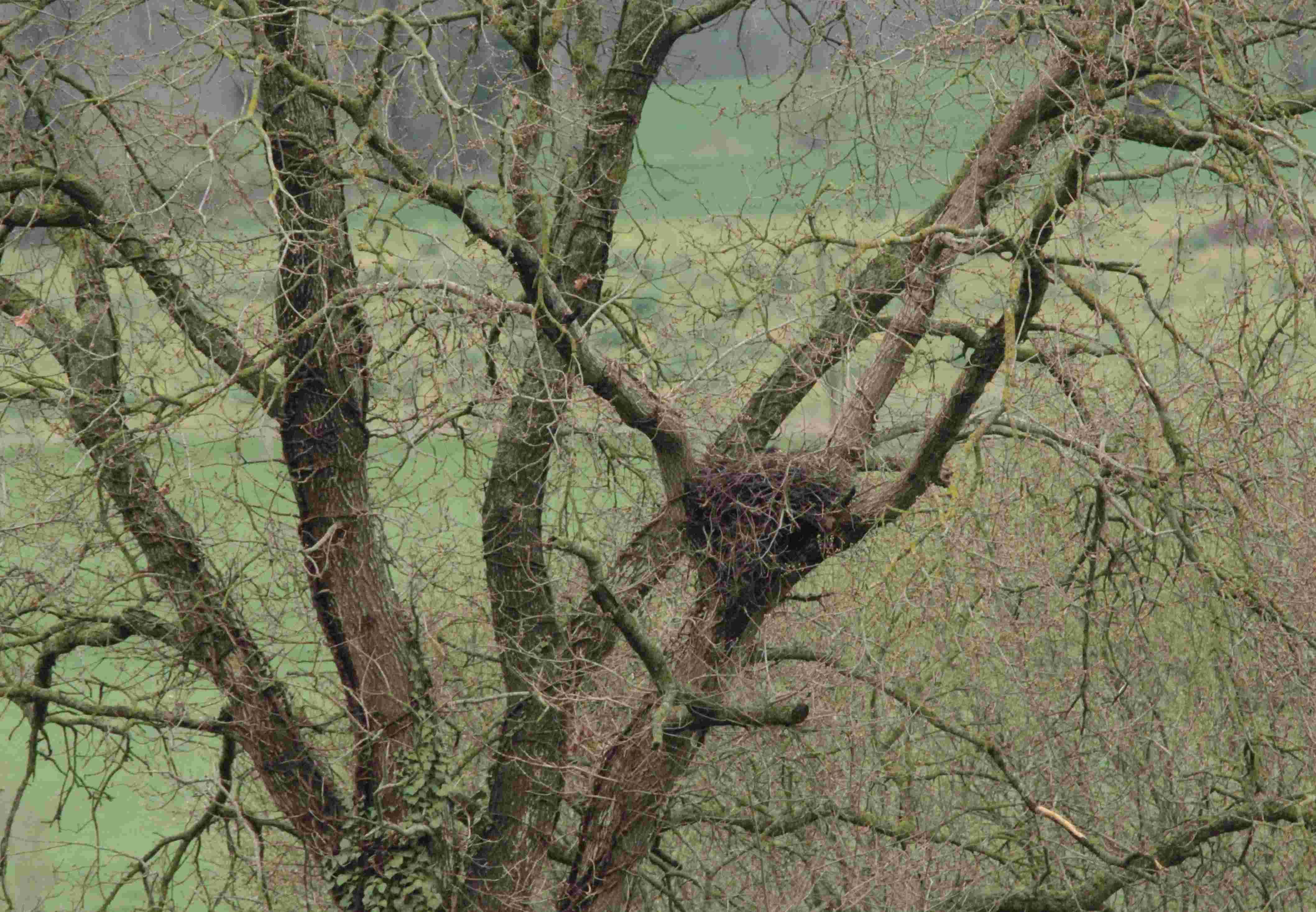 Une buse sur son nid bien ennuyé avec 7 corneilles posé sur le même arbre 8 avril à Barenton.