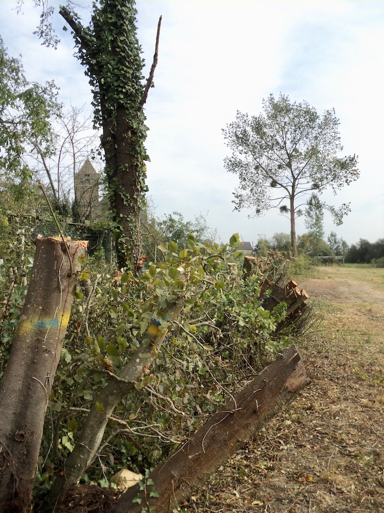 Mi septembre 2020, une haie vieille de 30 ans a été rabattue à hauteur d'1,10 m. Anciens et nouveaux nids sur site... La taille de la haie, à proximité immédiate du bourg, va provoquer un bruit de fond désapprobateur symbolique de la perte de sens du bocage : la haie n'existe que parce les paysans la taillaient régulièrement... Ici, la surprise est amplifiée par le fait que la taille aurait dû avoir lieu 2 fois entre 1995, date de plantation, et 2020.