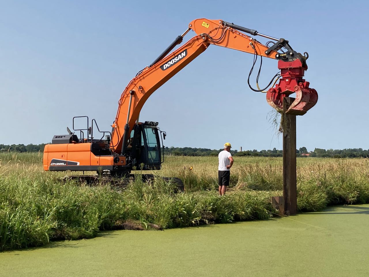 Début de chantier sur la RNR des marais de la Taute : nouveau pont enjambant la Vieille rivière.