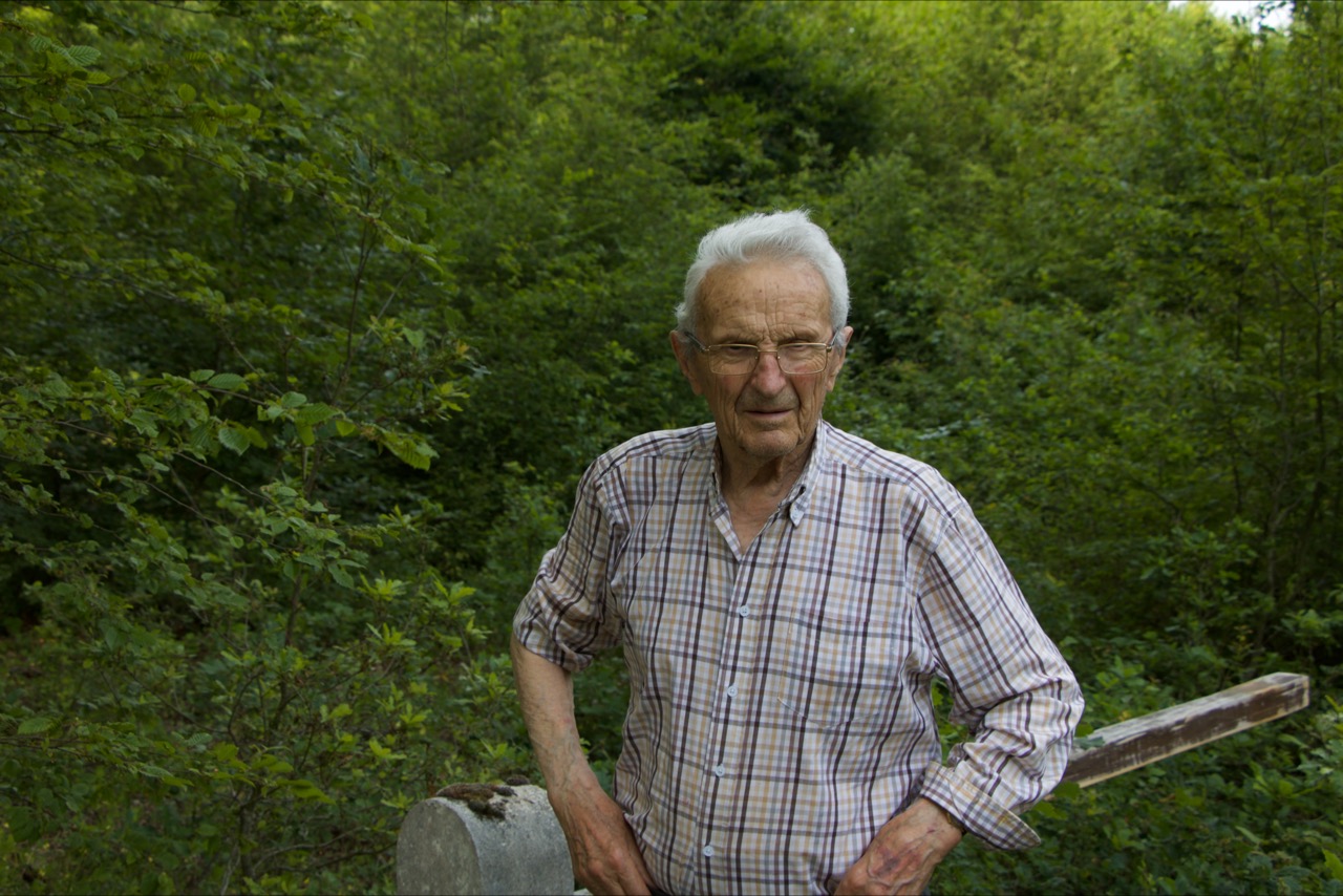Gaston Moreau en 2017, au Mage, dans « sa » forêt et près d’un de ses étangs. (Photo : J.M. Savigny)