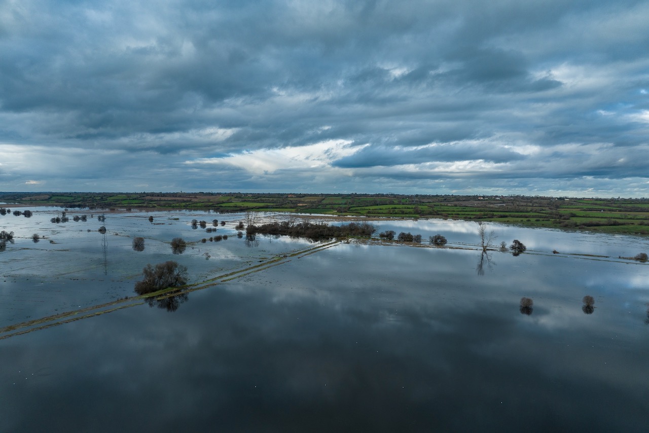 Les 4 clichés qui suivent concernent la haie perpendiculaire au flot de crue : le roncier bloque partiellement l'eau, des débris de végétation sont arrêtés, visibles ici parce que le niveau a légèrement baissé.