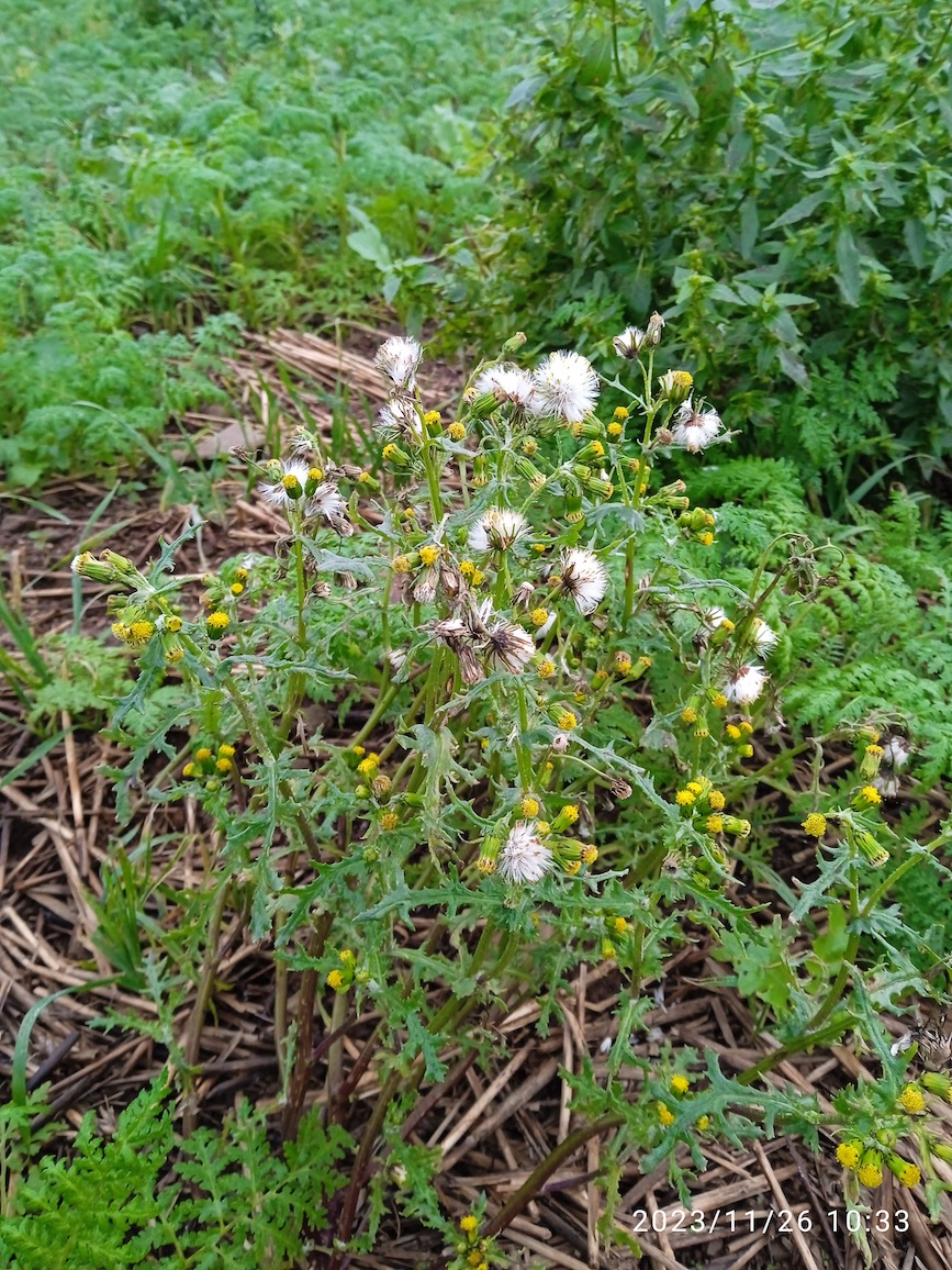 Le refuge de la Croix au Blanc est pour partie cultivé en maraichage bio. Lors des deux derniers relevés (01/12/23 et 15/01/24), des petits groupes de passereaux ont été levés sur certaines parcelles de légumes, des granivores (pinsons des arbres, bruant jaune, verdier, accenteur) mais aussi pipit farlouse et pouillot véloce. Ces derniers en groupe de 5+ individus fréquentent une parcelle de choux et autres légumes en cours de récolte. Ce détail est important : il est possible que des insectes soient présents sur les déchets de légumes effeuillés sur place et un peu pourrissants. On est ici à plus de 200 m d'altitude, remarque destinée à différencier ce stationnement hivernal de celui qui est constaté quotidiennement "en bas" dans la vallée de la Sée sur les réserves de l'Orange et du Montier.