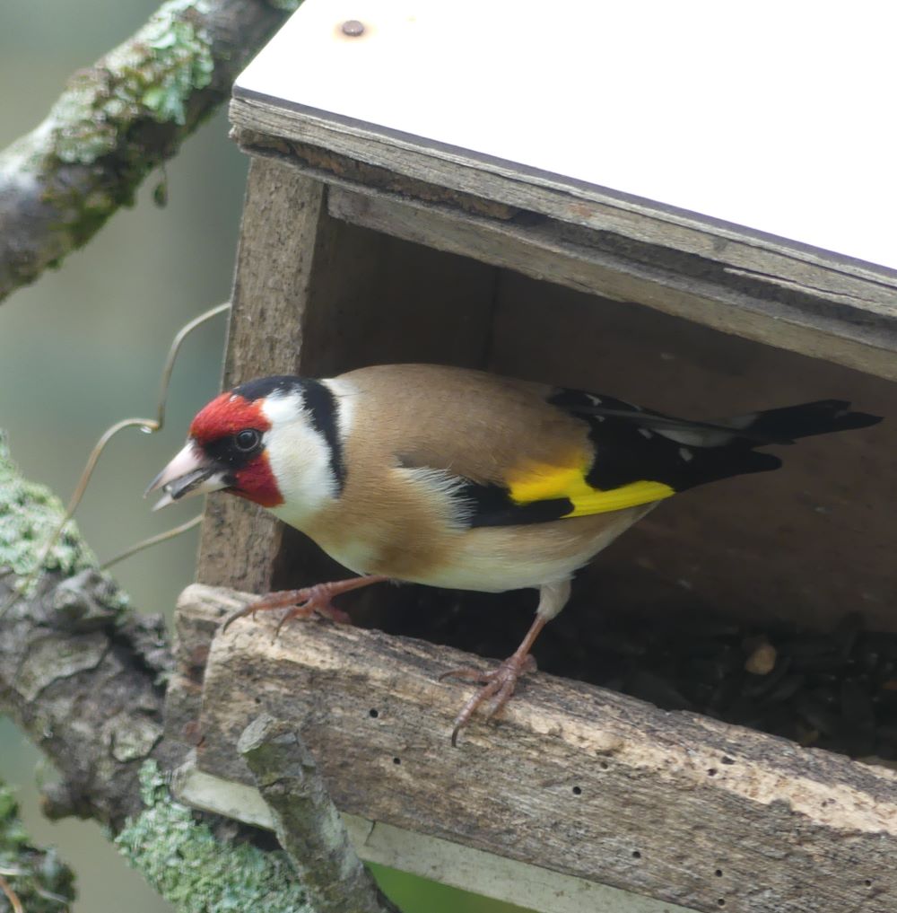 Arrivée, depuis une semaine, d'une bande de tarins des aulnes. Pas farouches, ils fréquentent les mangeoires et le jardin.
