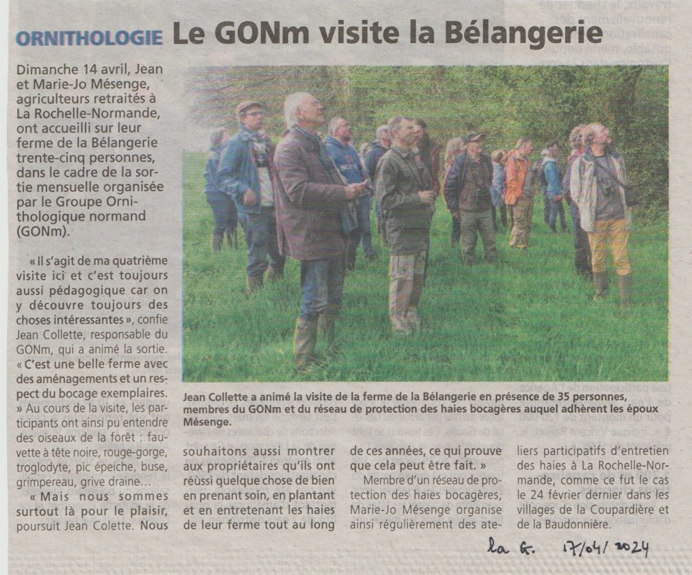 La ferme de la Bélangerie à la Rochelle Normande avait été programmée pour la sortie de mi avril du groupe de l'Avranchin. Elle a ceci de particulier que les anciens agriculteurs ont planté il y a une vingtaine d'année de jeunes haies bien menées et taillées depuis. Madame Mésenge est investie dans un groupe local informel de taille d'entretien manuel de haies sur la commune.
