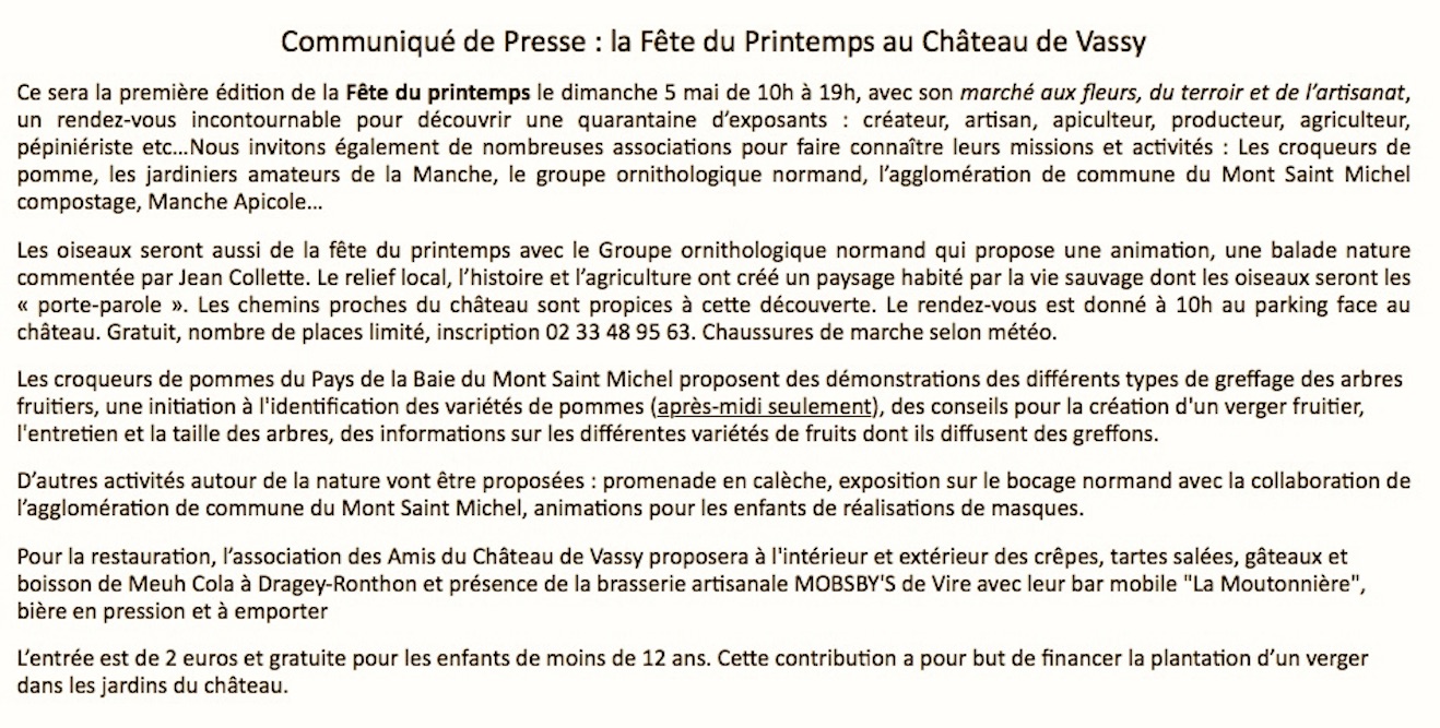 Pour la partie organisation/stands commerciaux, contacter: chateaudevassybrecey@gmail.com