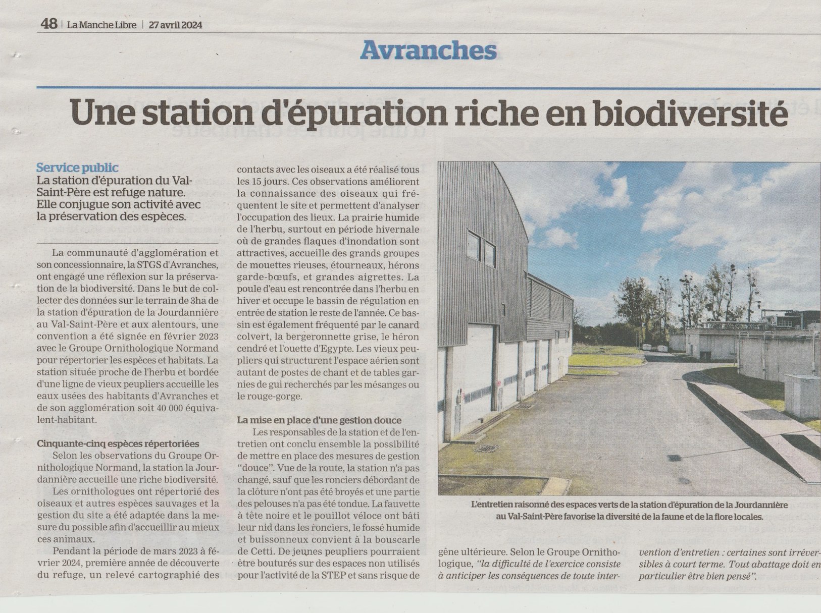 Une convention refuge a été signée il y a un an avec l'entreprise STGS chargée du fonctionnement et de l'entretien de la station d'épuration d'Avranches et sa périphérie. Après la publication du premier bilan, la collectivité (agglo MSM -Normandie) a souhaité communiquer sur les résultats et en même temps en profiter pour expliquer l'apparent manque d'entretien vu de l'extérieur.