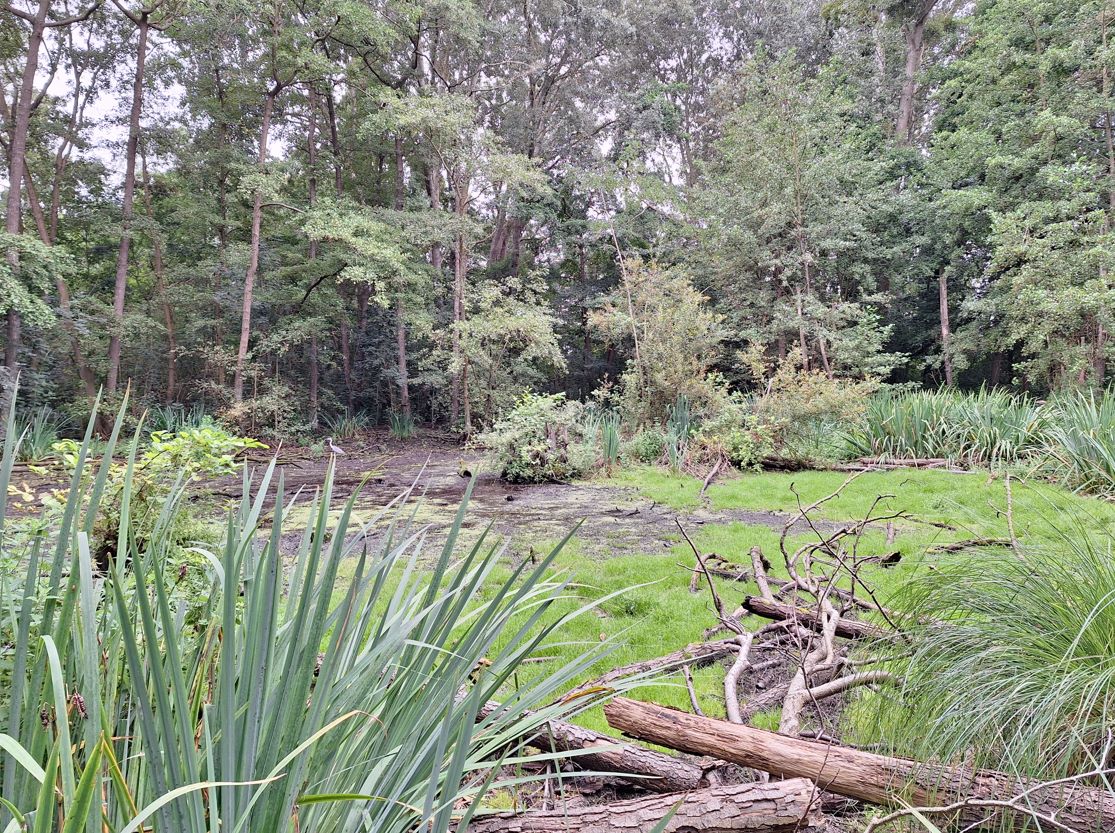Une mare d’environ 12 m de diamètre, en voie de comblement, occupe la partie centrale de l’aulnaie. L’étude du peuplement de cette mare pourrait lui aussi être envisagé mais cela risque de se heurter à la nécessité de préserver la quiétude des lieux durant la longue saison de reproduction des hérons. La mare au niveau de l'aulnaie