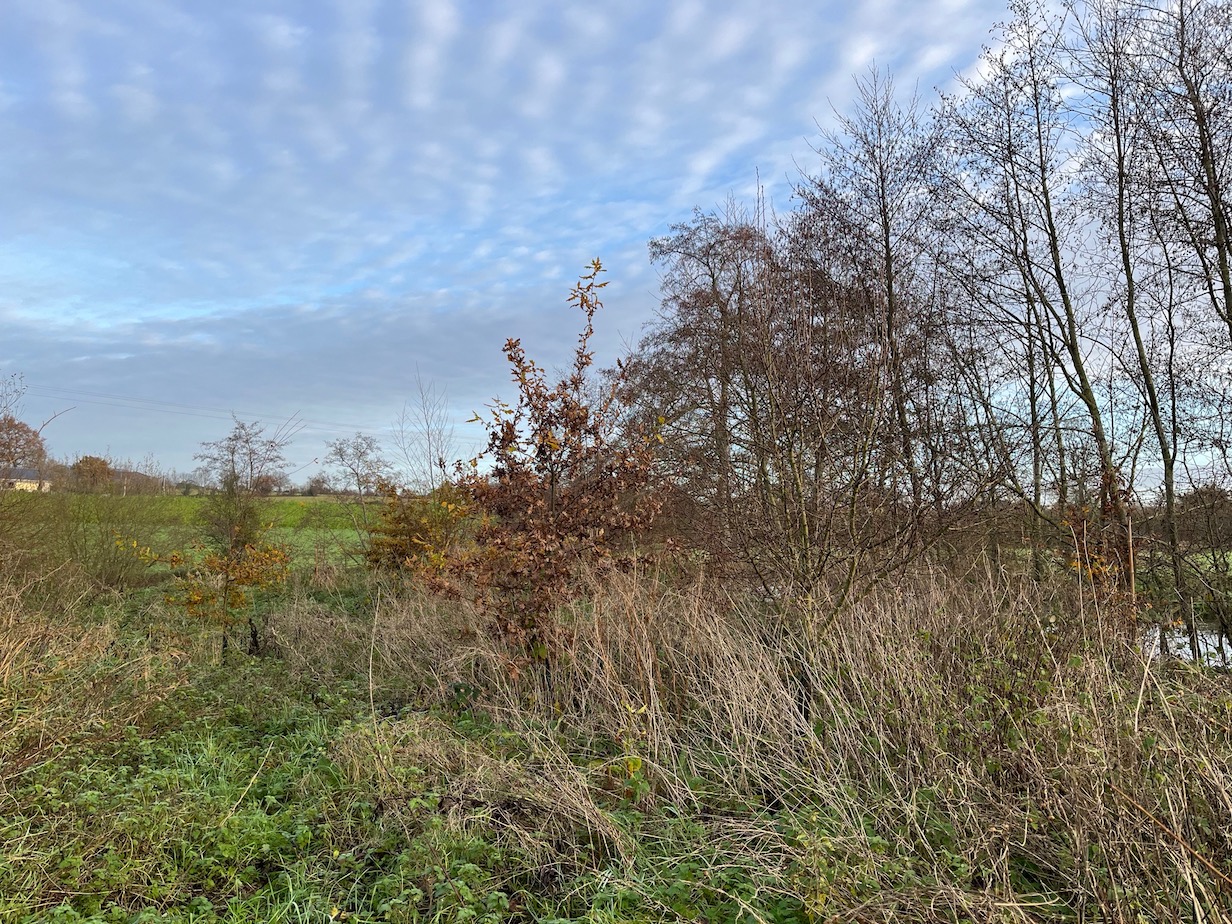 Cette diversité d’arbrisseaux et d’arbres, grâce aux fruits et graines produites, est susceptible de fournir des ressources nutritives à de nombreuses espèces aviaires. La partie sud de cette saulaie est occupée par une clairière à peu près circulaire d’environ 130 m2 aisément repérable sur la photo aérienne. Cette clairière est régulièrement faucardée, ce qui permet de maintenir sa pérennité. A ce jour et malgré nos recherches nous ne connaissons pas les auteurs de cet entretien. La clairière au niveau de la saulaie