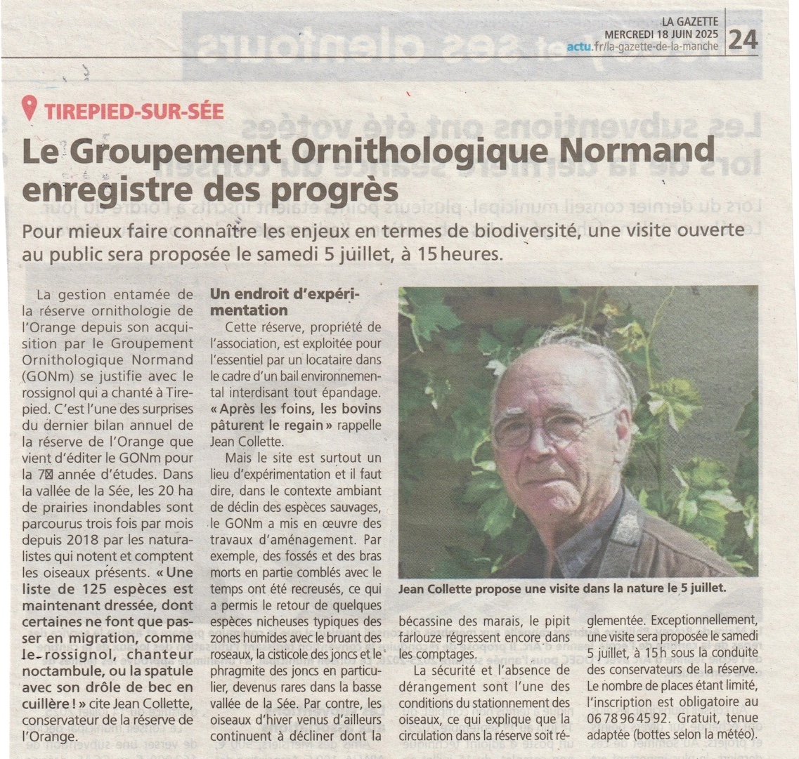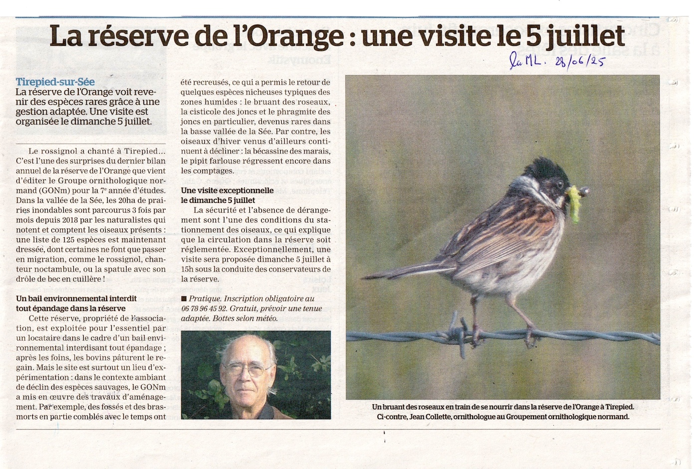Ouest-France, 18 juin 2025. Paulo Sanson, co conservateur de la réserve avec moi, n'apparait pas dans le texte.