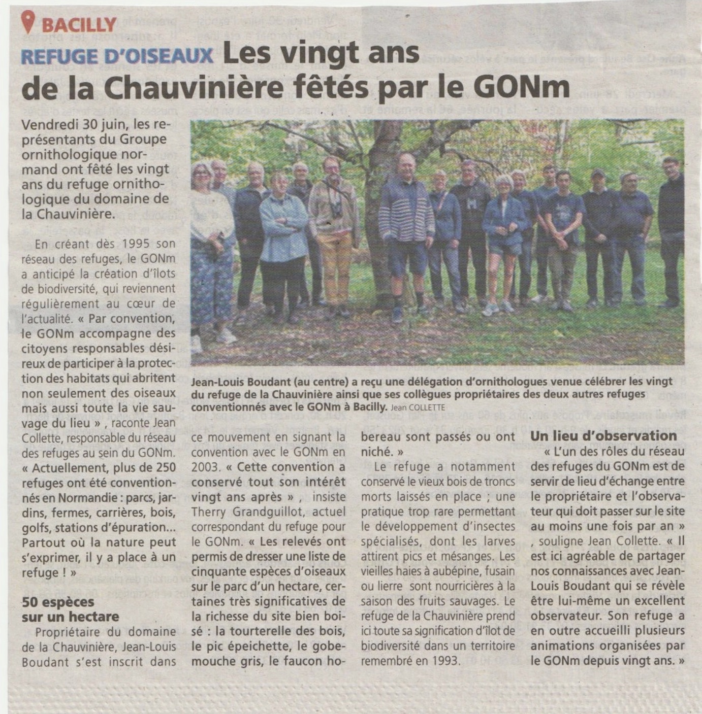 Voici un article relatant la journée de l'oiseau qui s'est déroulée à l'occasion de l'inauguration de ce nouveau refuge à Vassy/14.