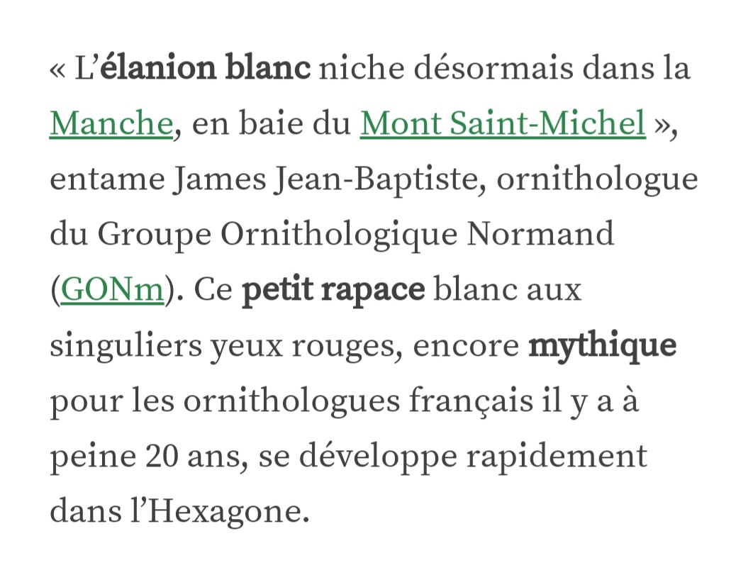Même si la nidification de l'élanion blac a été remarquée l'an passé, elle apparait aujourd'hui de façon officielle dans la presse, mais numérique dans Actu.fr.