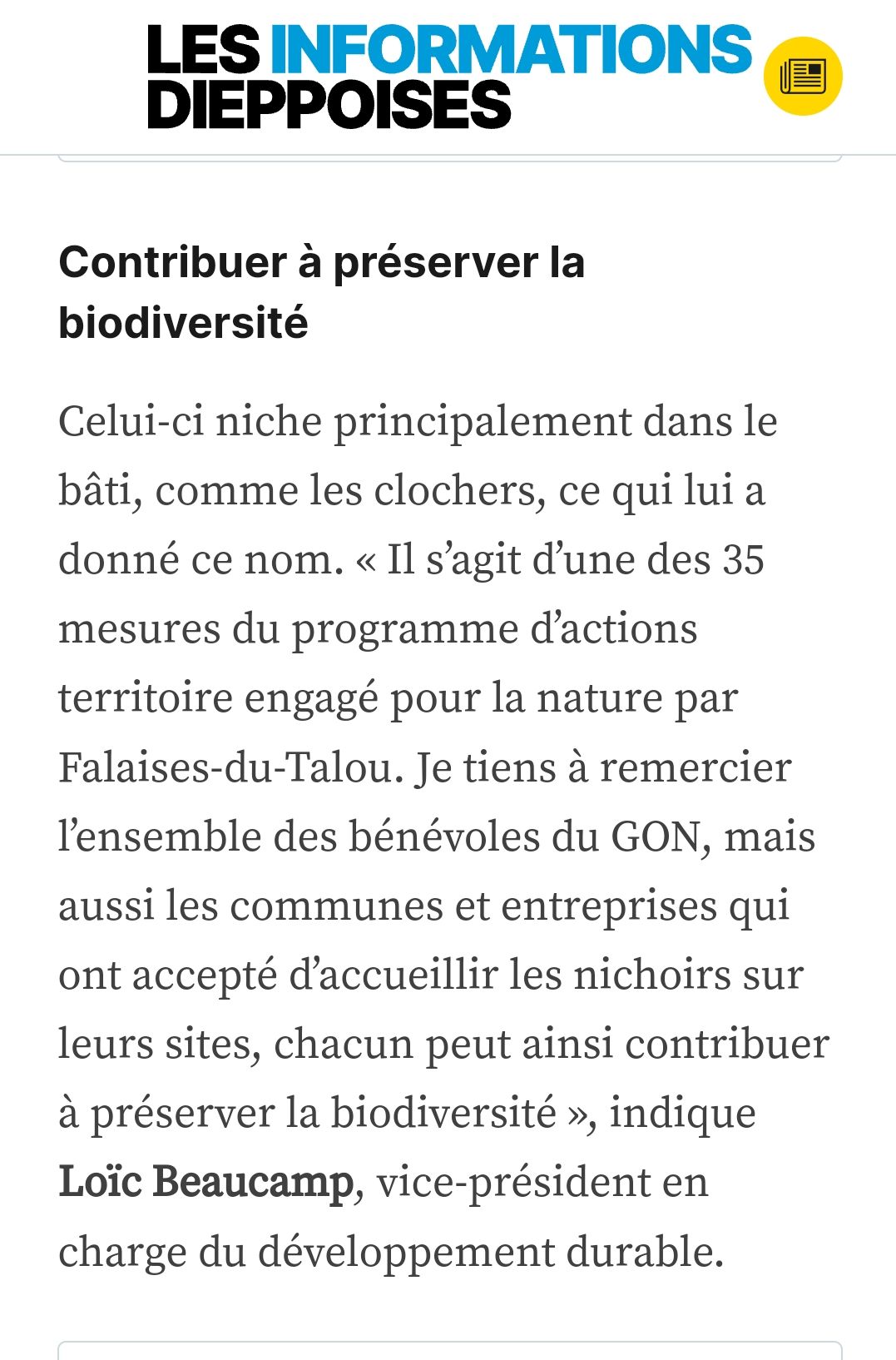 Il y a un mois, nous étions "sur le pont" pour le WE des refuges ouverts au public. Certains d'entre nous avaient eu la chance de motiver un journal local, ce qui fut le cas pour Jean-Michel à Thénouville. Malgré ses craintes à l'issue de la visite de la journaliste, l'article est finalement très correct! En tout cas, la partie descriptive concernant les nichoirs est bien rendue. Il faut toujours se souvenir que nos connaissances sont un peu techniques pour la plupart de nos interlocuteurs. Neuf participants, c'est bien et on peut faire confiance à Jean-Michel pour avoir fait passer la passion!