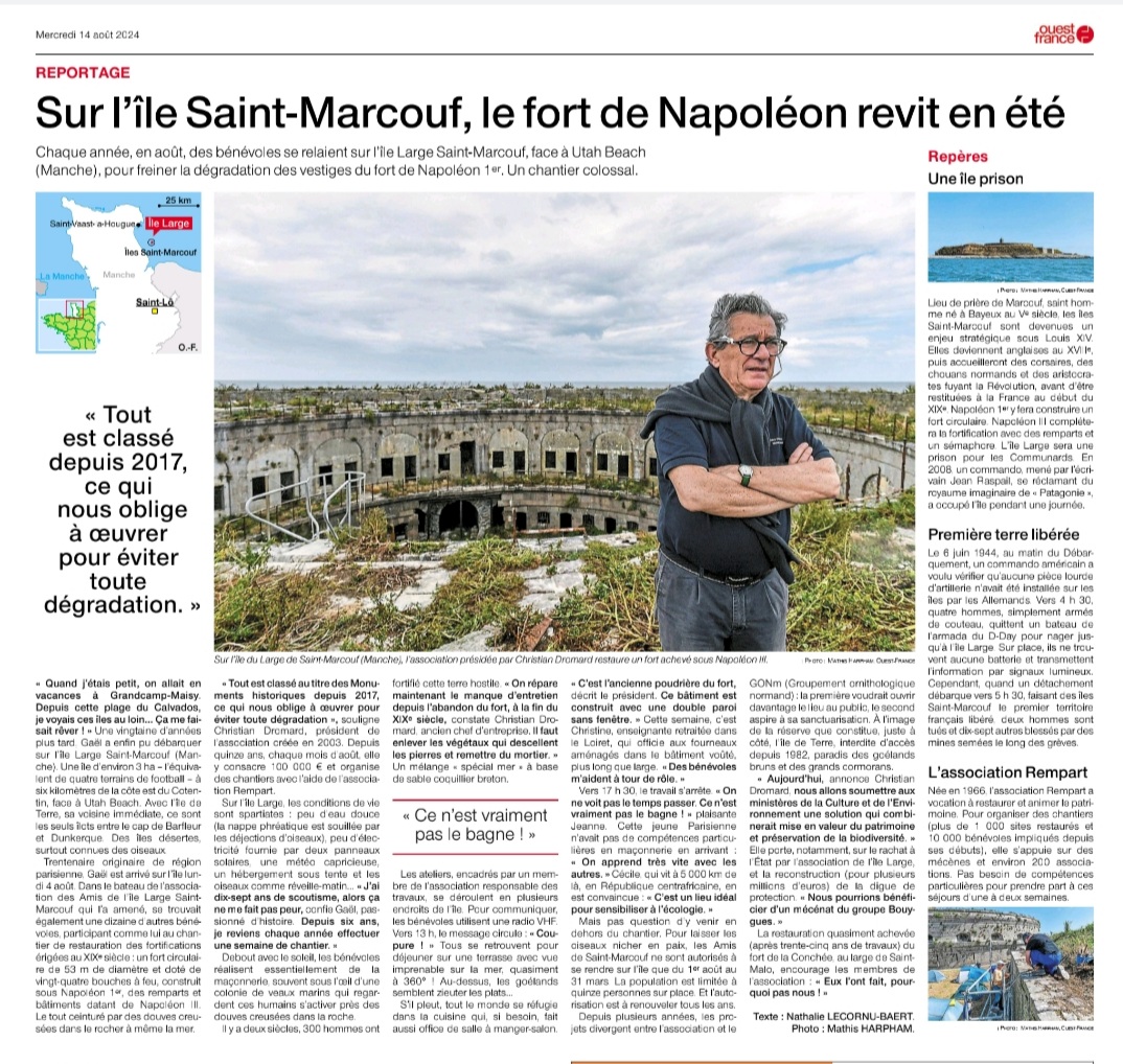 Ce Monsieur et son association sont bien servis : deux articles en deux semaines et celui-ci en dernière grande page dans Ouest-France.