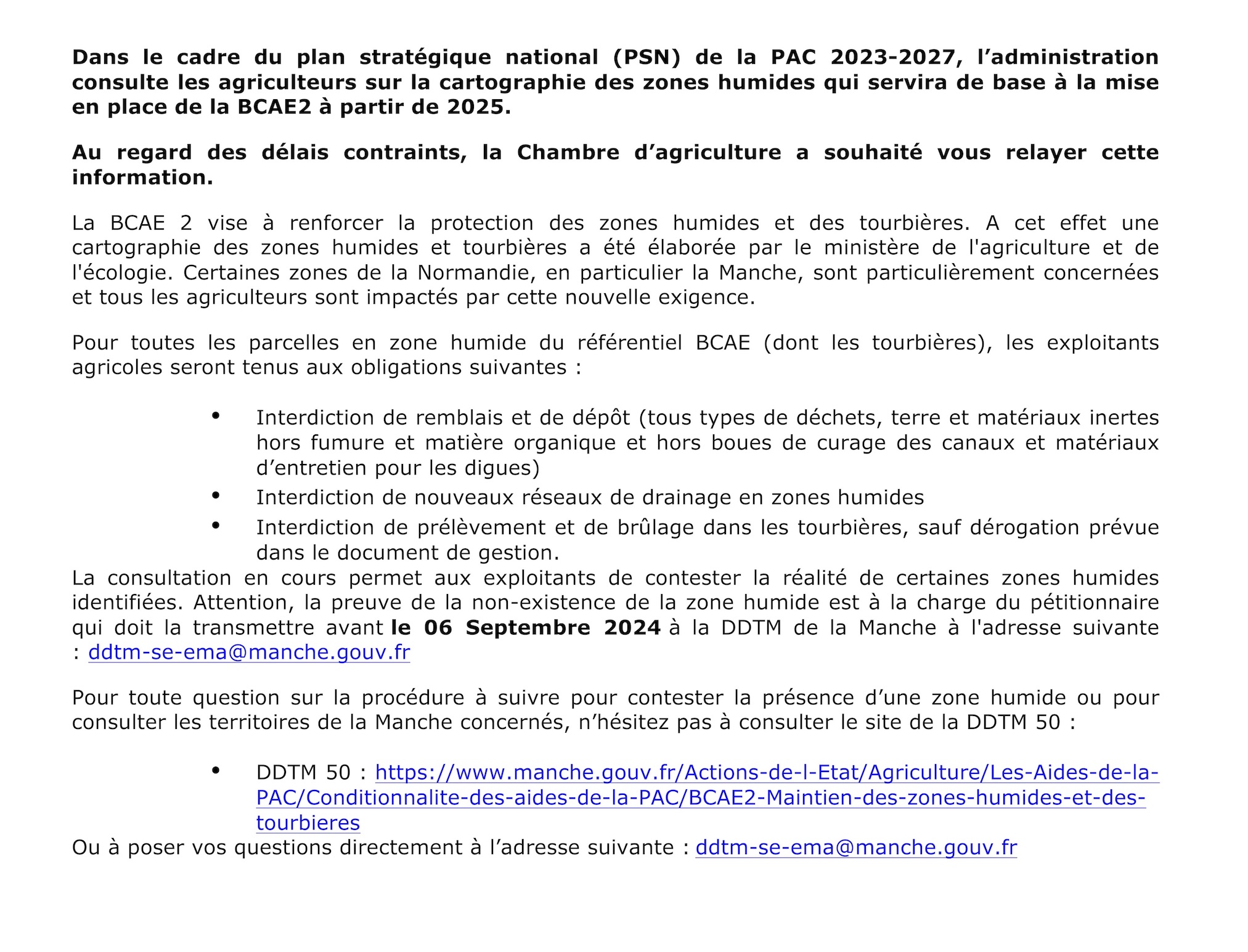 Il s'agit de la "conditionnalité des aides PAC" (en clair les conditions à remplir pour toucher ces aides dans le cadre de la Politique Agricole Commune). La réforme PAC de 2003 a été "renforcée pour la programmation 2023-2027 en matière d'environnement". Jusque là tout va bien. Après, ça se complique, toucher l'aide, oui, mais les contraintes, ça se discute. Mettre dans le shaker les zones humides, les engins agricoles de plus en plus lourds, le recul de l'élevage bovin, la prairie naturelle passéiste, et le résultat est irréel: il suffit de curer les ruisseaux pour défendre l'agriculture qui va dans le même temps remplir la BCAE 2 "Protection des zones humides et des tourbières".