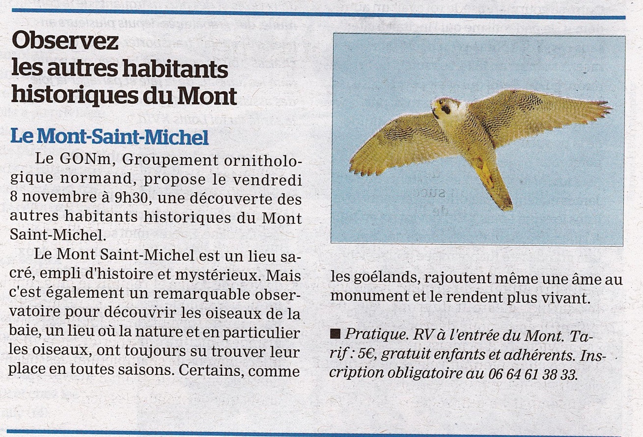Merci à notre collègue Fanny Leprovost qui nous fournit régulièrement les articles de la Manche libre pour le Sud Manche. Si quelques adhérents ailleurs en Normandie s'attachaient à transmettre les articles de leur région qui nous concernent, l'activité du GONm vue de l'extérieur nous serait mieux connue et nous pourrions en tirer des leçons de "communication", domaine dans lequel nous avons encore des progrès à faire!