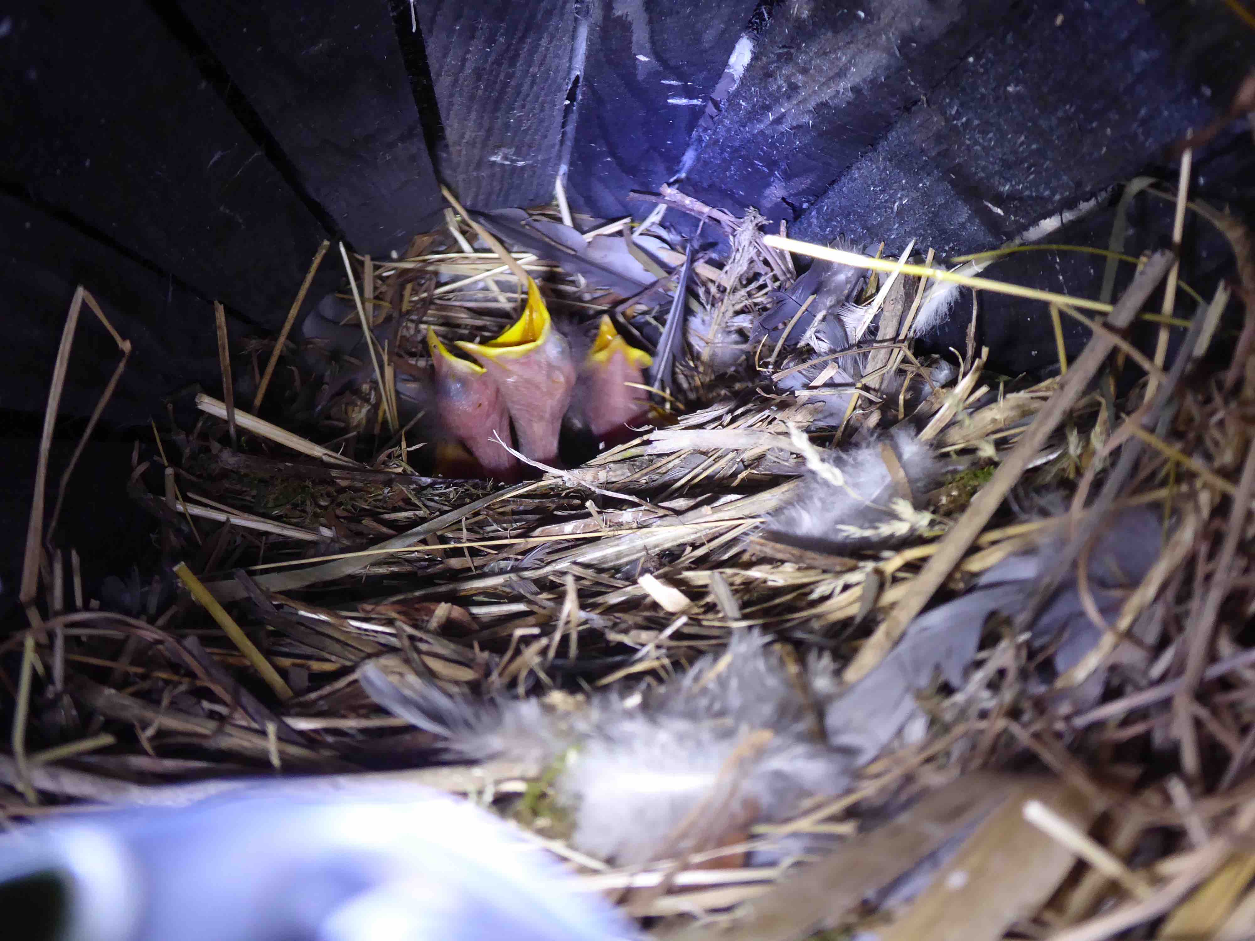 prédaté par une pie ,il y a plusieurs années. 2 nichoirs semi-ouverts n'ont pas l'air de les