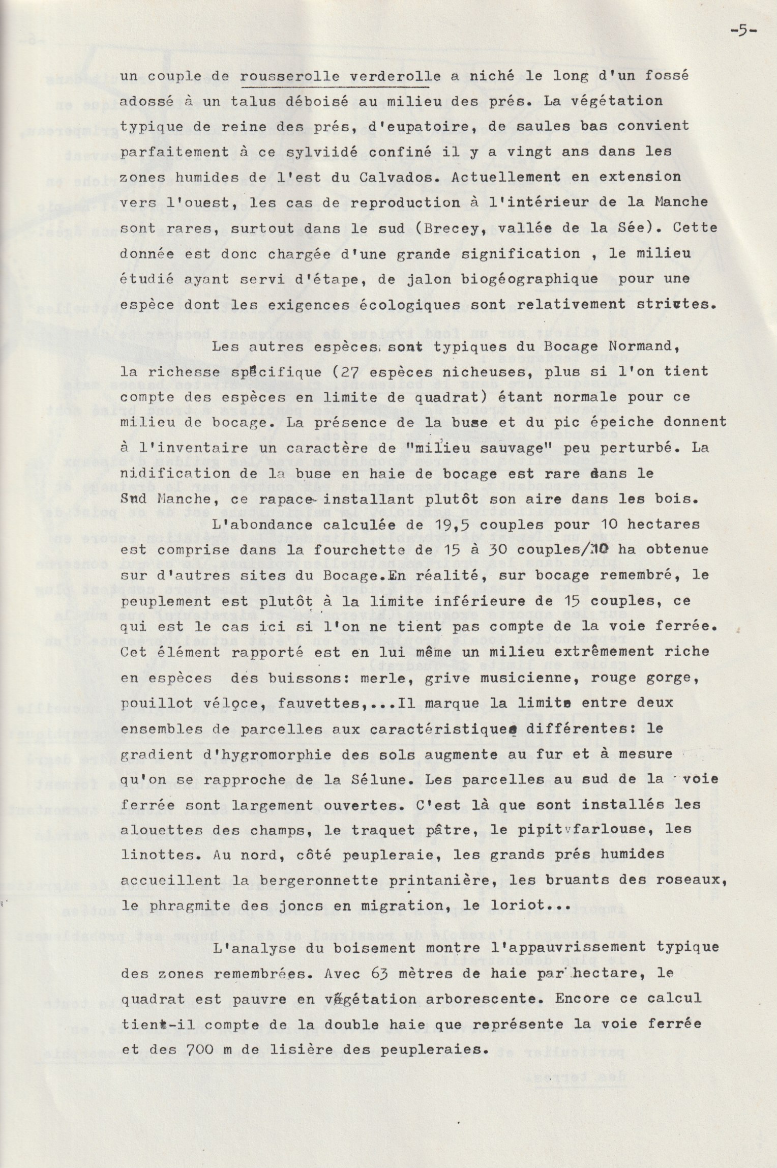 Pour mémoire, un chasseur habitant la vallée à faible distance, Monsieur Greslé, avait signalé par ailleurs "son" dernier chanteur de râle des genêts dans les prairies du lit majeur de la Sélune de Ducey en mai-juin 1973.