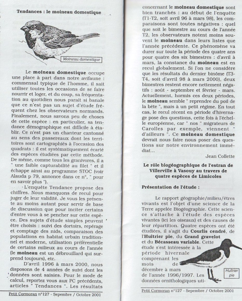 Le moineau domestique ne parait pas en forme en 2001. Du moins à travers "les calculs de l'époque". Le futur va confirmer cette tendances démographique.