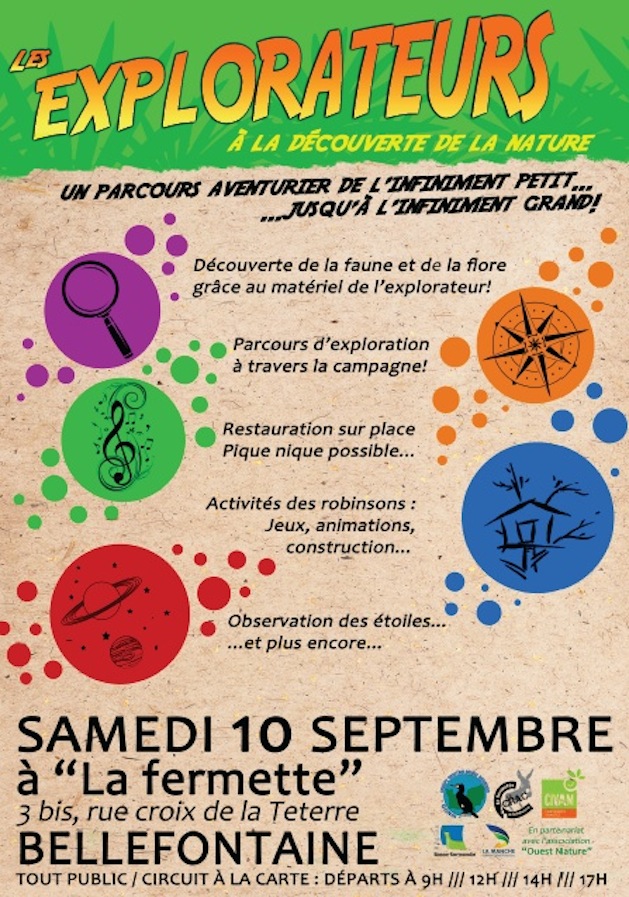Organisée par le CIVAM, au même titre que les journées de printemps intitulées "Curieux de nature", cette première expérience des EXPLORATEURS A LA DECOUVERTE DE LA NATURE se tiendra à Bellefontaine (entre Brécey et Mortain) le samedi 10 septembre sur le terrain de la fermette, un des refuges du GONm.