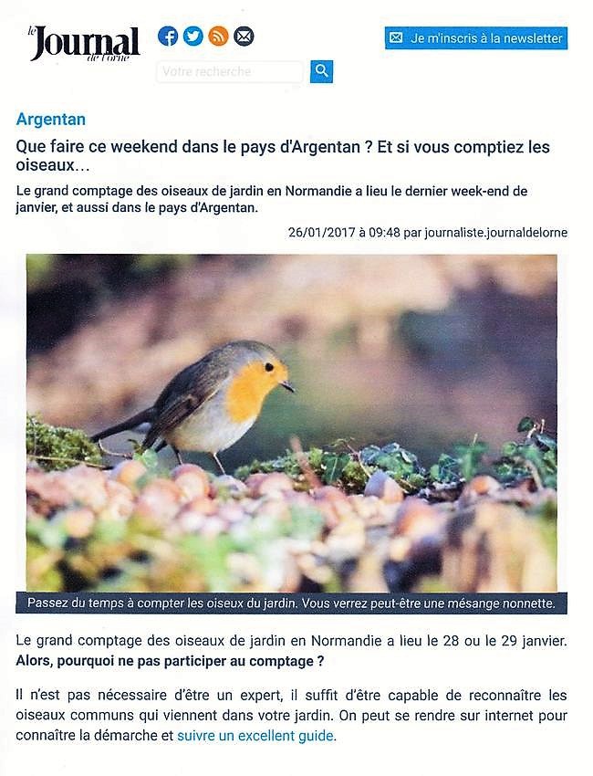 Robin Rundle qui est chargé de la communication autour du Grand Comptage des oiseaux de jardin a fait parvenir un communiqué de presse à un grand nombre d'organes de presse normands qui ont cette année particulièrement bien répondu.