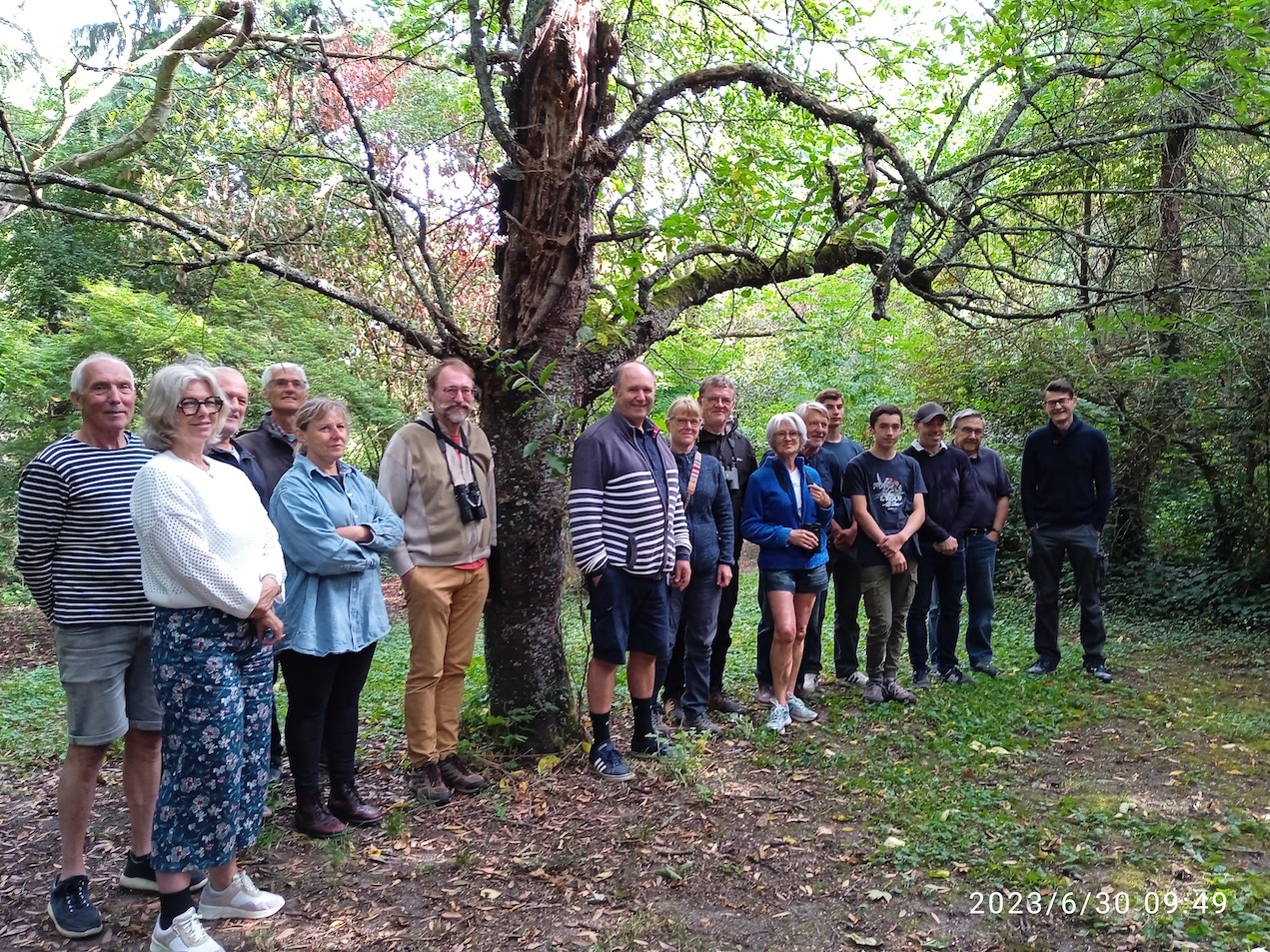 Lors de la dernière visite le 19.06.2023, une nouvelle espèce est venue,, à notre grande surprise, s'ajouter à la liste des espèces : le pouillot siffleur. Il était présent dans une hêtraie, vieille de 30 ans comme la forêt et constituée de sujets relativement petits. Plantés, il y a 30 ans, en rangs très serrés, ils n'ont pu se développer normalement et restent de taille modeste. Le pouillot siffleur, lui, a déjà trouvé cette hêtraie à sa convenance, tant mieux alors qu'il aime plutôt les grands arbres pas trop serrés, dit Géroudet. L'oiseau n'a pu être vu : il était en effet assez haut dans la canopée et pas sur des branches latérales à petite hauteur comme cela peut se produire régulièrement.