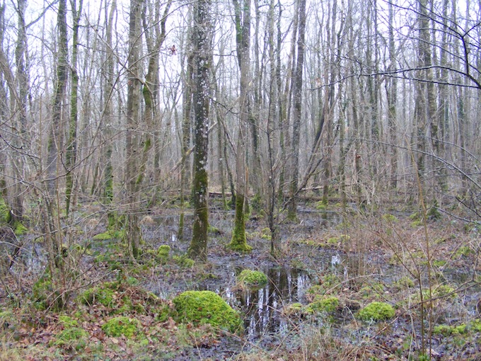 - Bref épisode de crue 13 & 14 décembre2014; vue depuis la pointe Est. Au centre, la saulaie de la mare