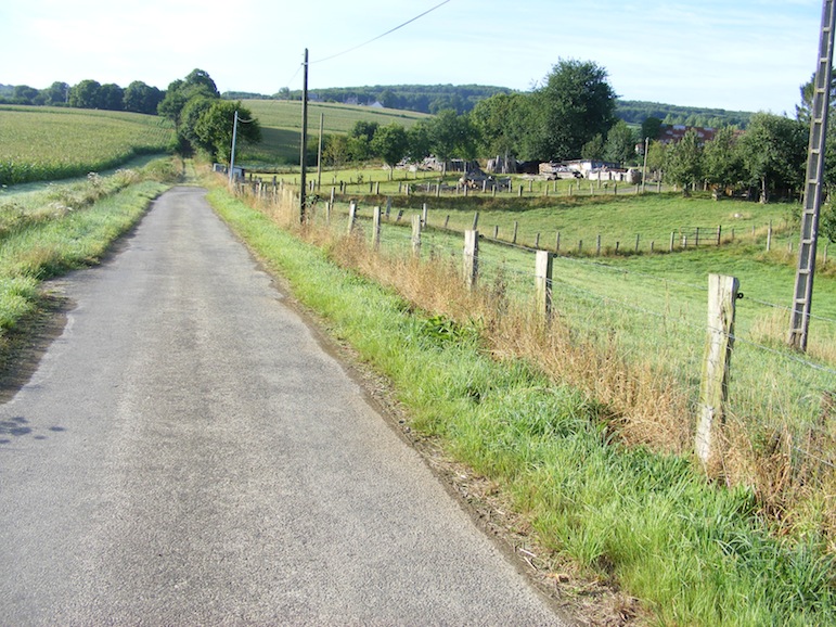 Chemin et petite route, vue dégagée, fermette, volaille et potagers...