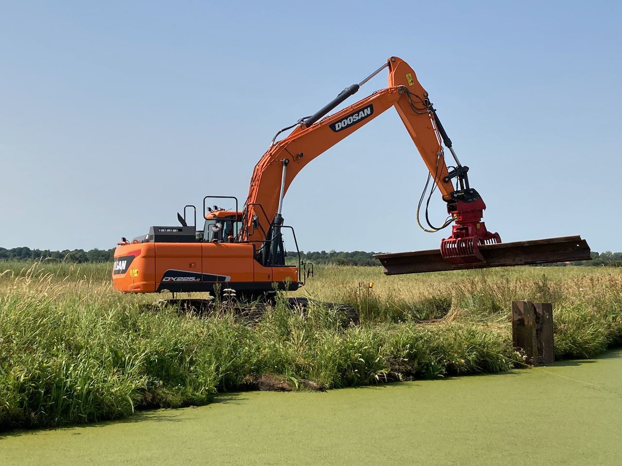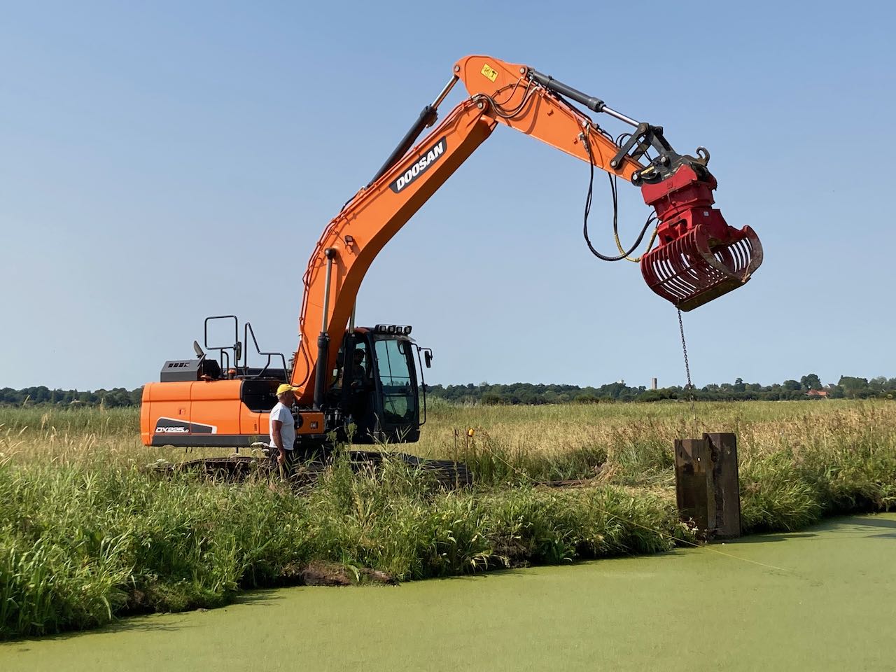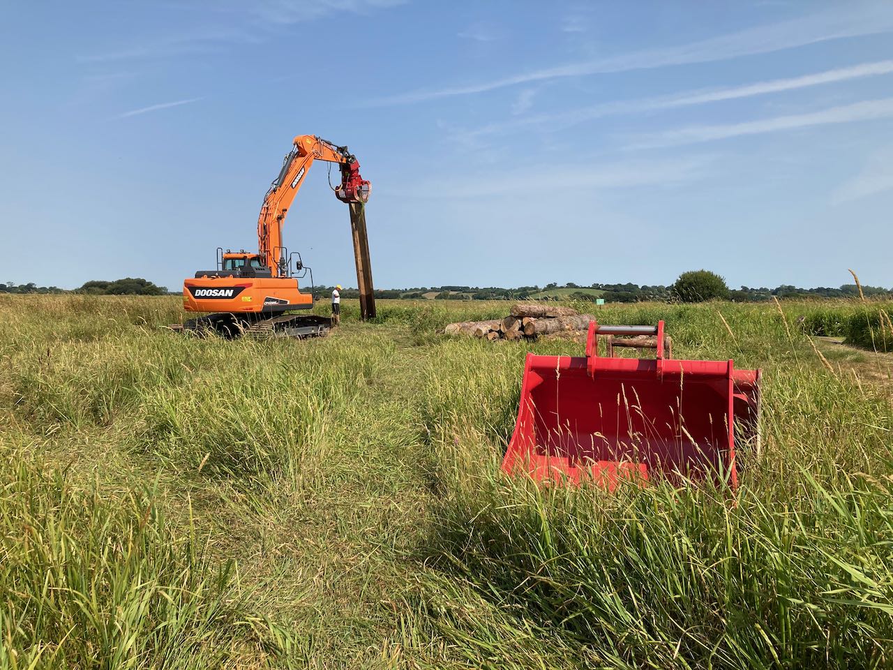 Début de chantier sur la RNR des marais de la Taute : nouveau pont enjambant la Vieille rivière.
