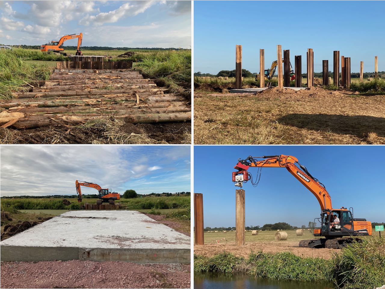 Du 18 au 23 juillet, travaux de bétonnage des culées sur lit de cyprès Du 2 au 16 août, enfoncement des pieux, recherche d’un fond solide (tangue ?) 18 m sous le niveau du sol
