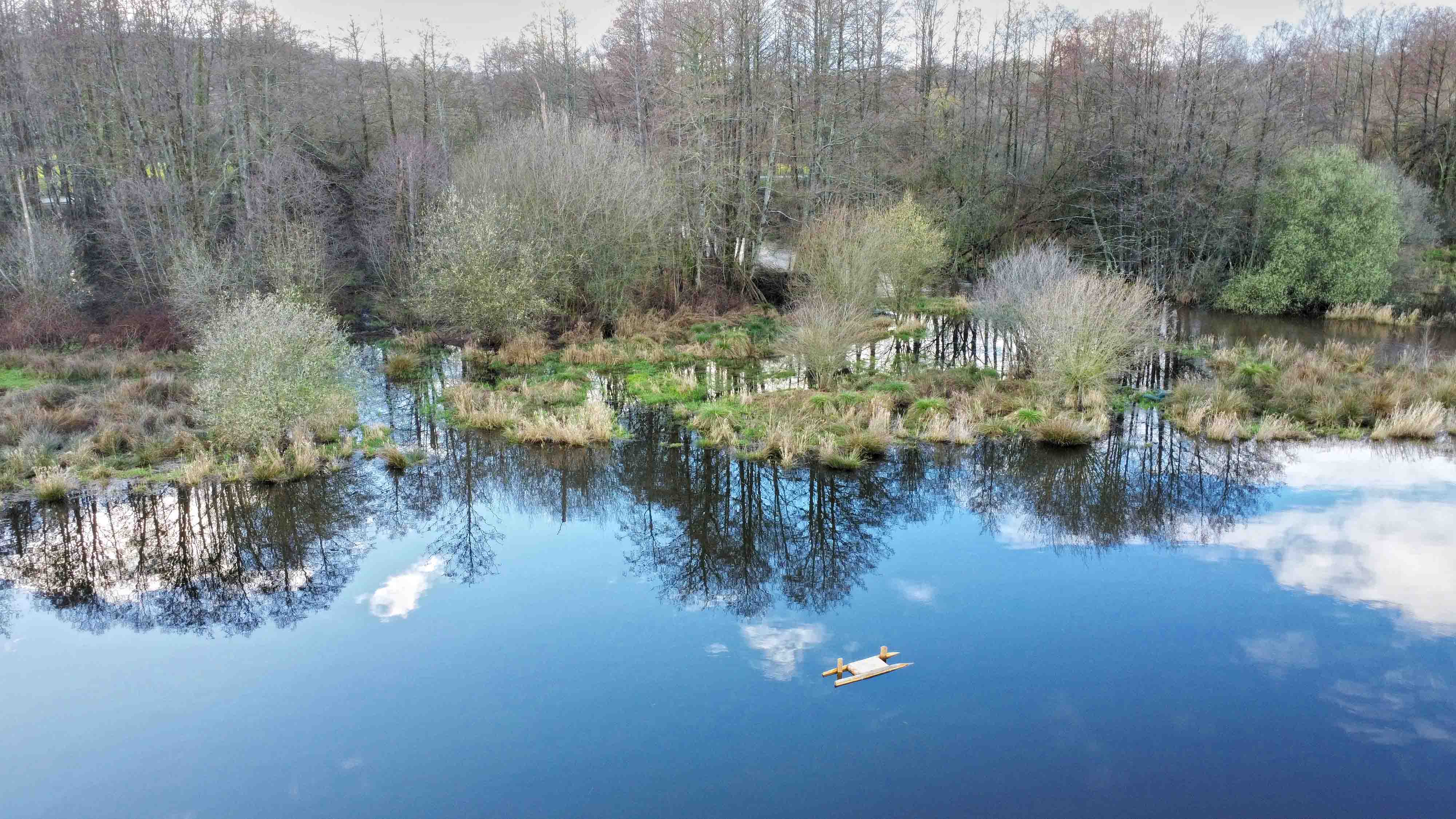 Les réserves du GONm : Chantier installation radeaux à la réserve du lac de la Dathée